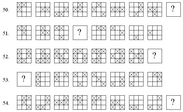 Draw the figure that should fill the blank (identified by the question mark) in each of the following series: [cf. Hoeflin Power Test, problems 32 through 35]